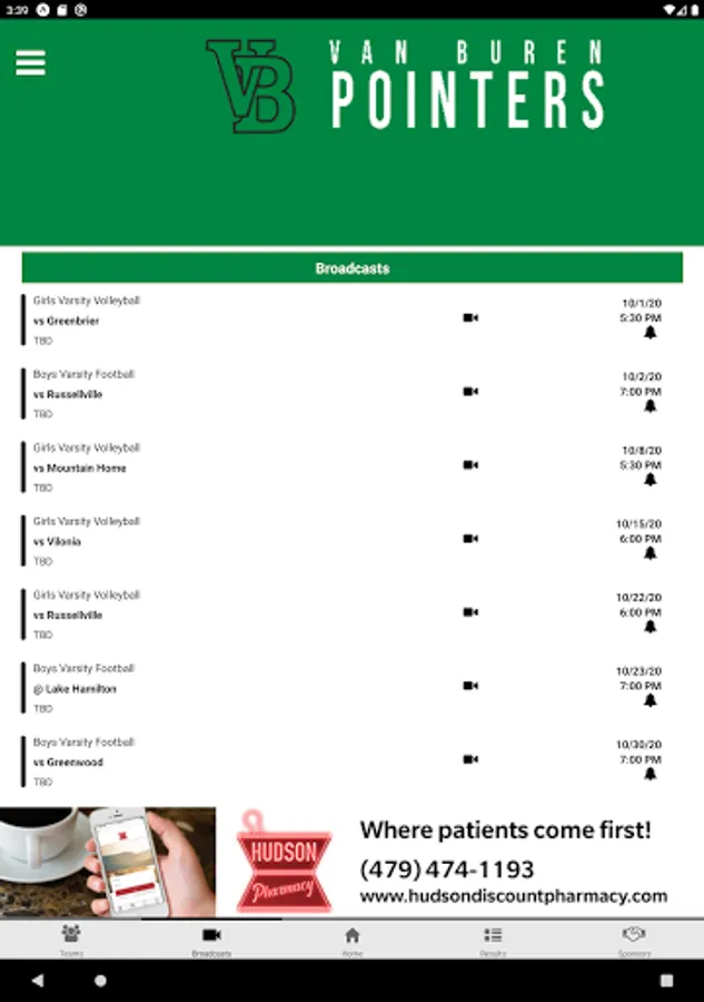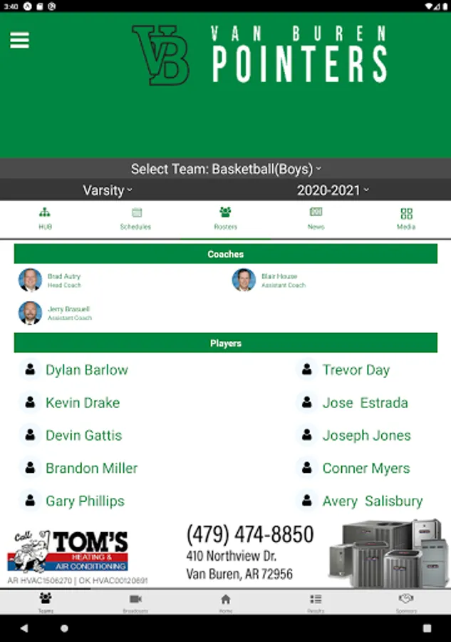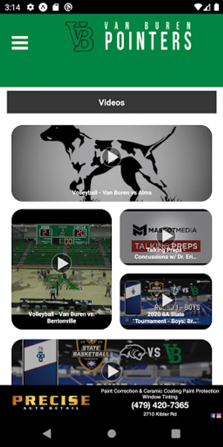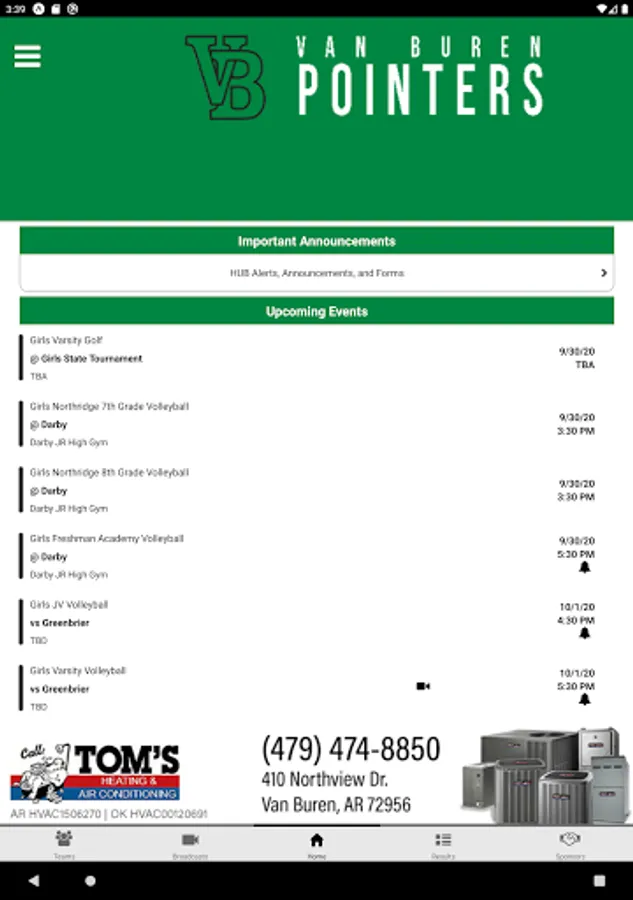 - Supporters: Special Thanks to local boosters and supporters of Van Buren Pointers Athletics with a directory including website and in-app calling.