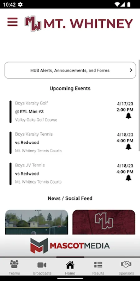 -Supporters: Special Thanks to local boosters and supporters of Mt. Whitney Pioneer Athletics with a directory including website and in-app calling.