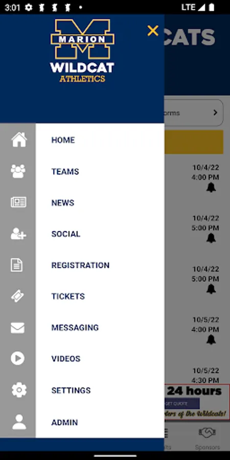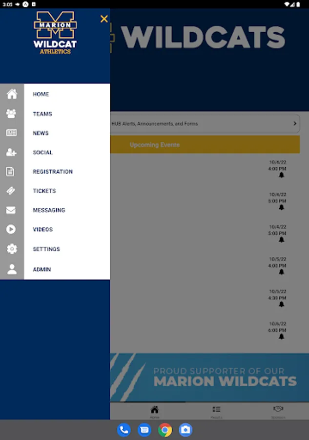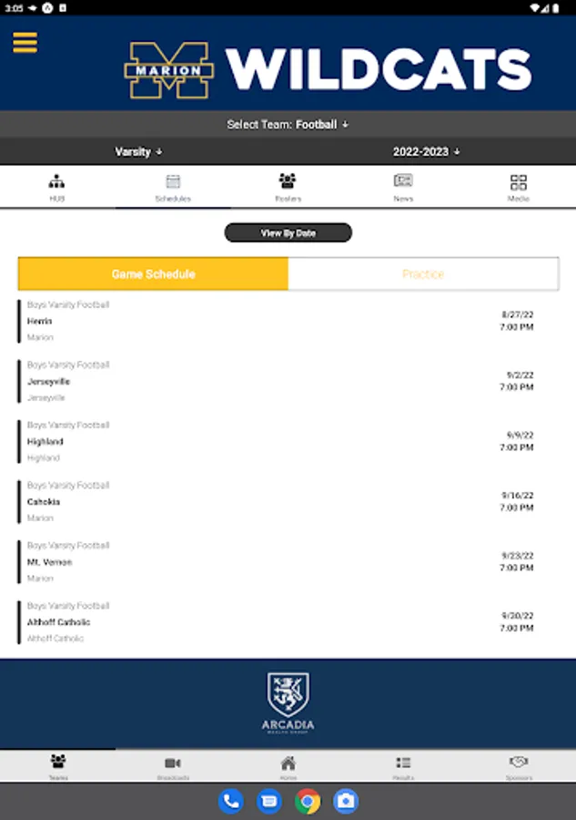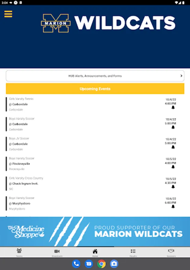 -Supporters: Special Thanks to local boosters and supporters of Marion Wildcat Athletics with a directory including website and in-app calling.