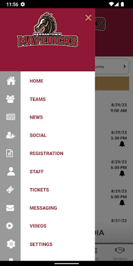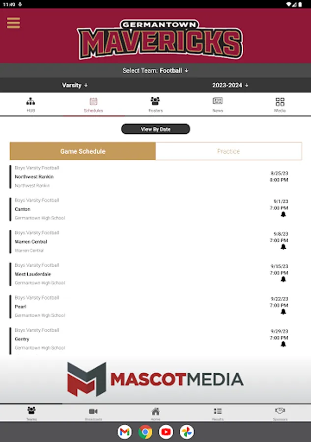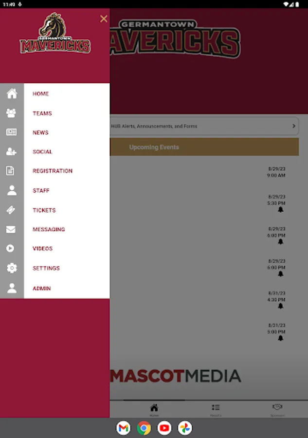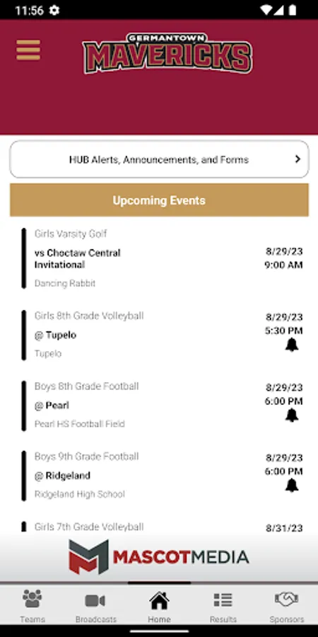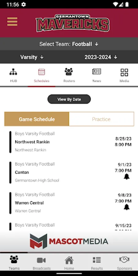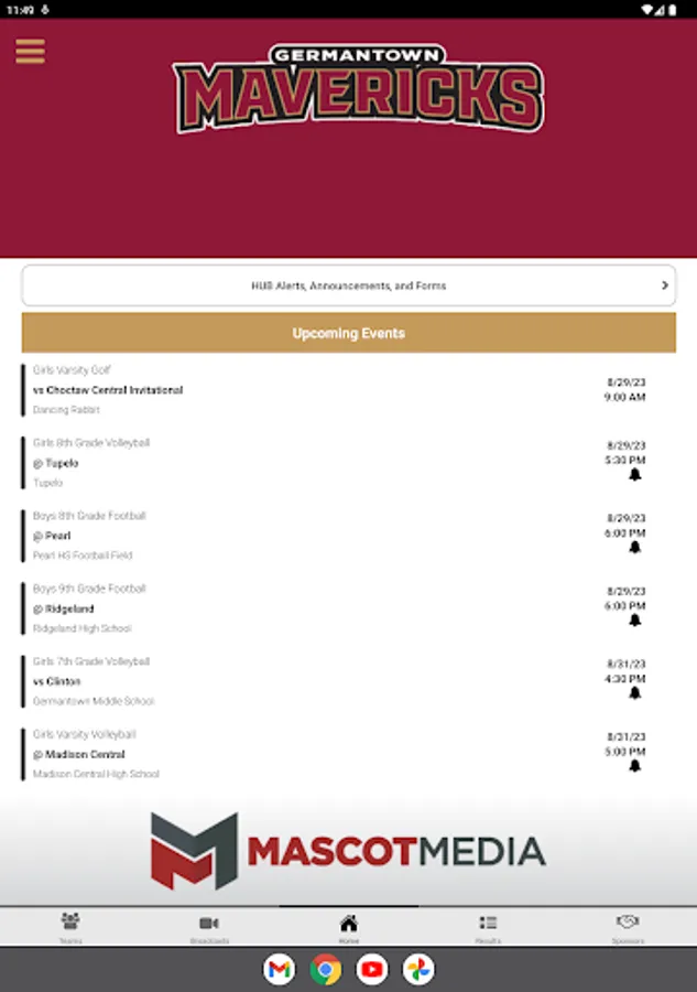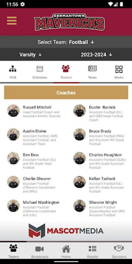 -Supporters: Special Thanks to local boosters and supporters of Germantown Mavericks Athletics with a directory including website and in-app calling.