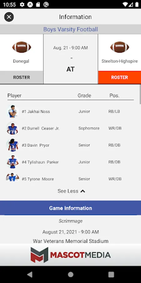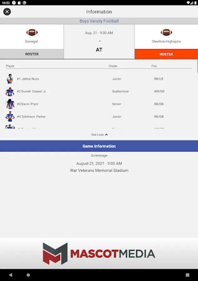 -Rosters: Current rosters by sport including jersey number, name, photo, position and grade.