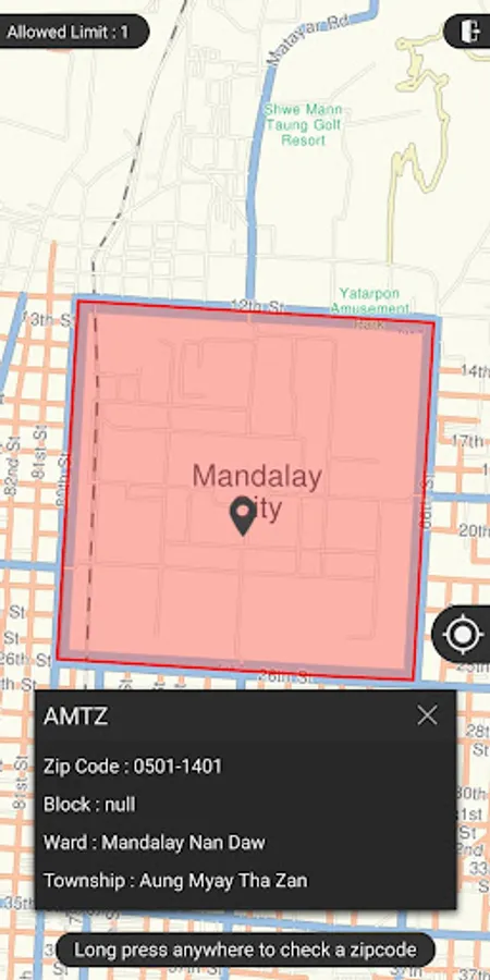 Generating zip code according user location. Check the desired location of zipcode in Mandalay.