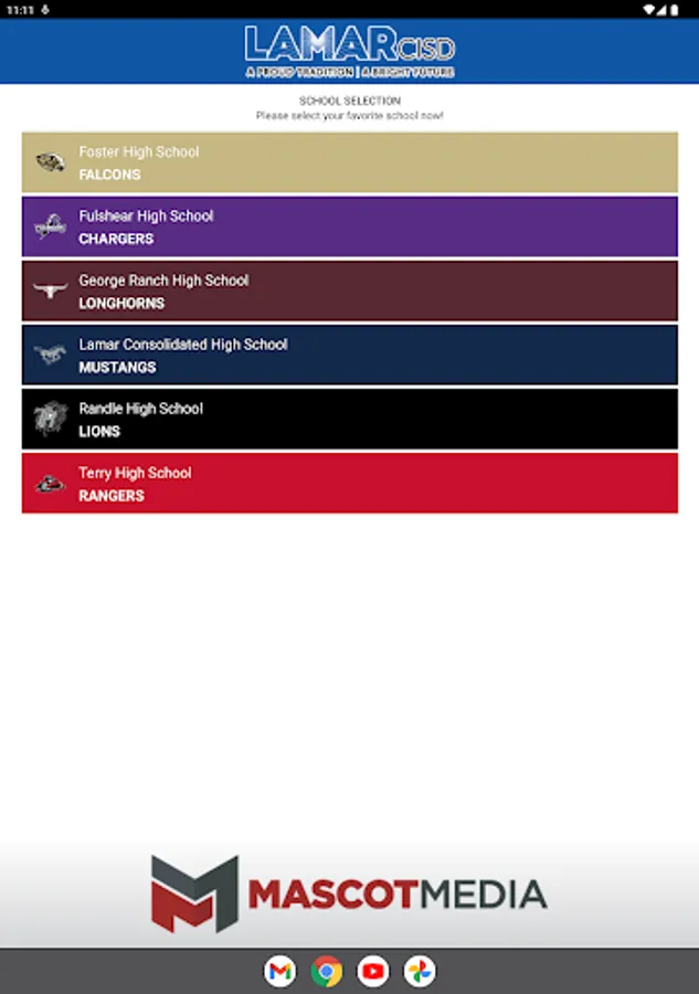 Fans of Lamar CISD Athletics can now stay up to date around the clock from the convenience of their Android device. Can’t make it to the game? Watch the LIVE broadcast. Need to know the score of last night’s game? Use the app to find breaking news, rosters, upcoming games, and much more.