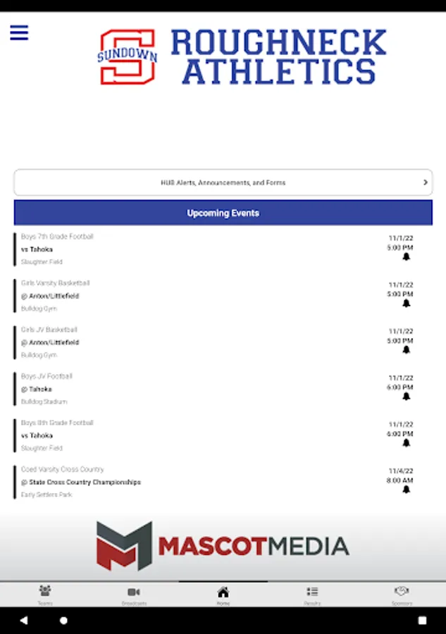 Content is managed by the Sundown Roughnecks Athletics Department with help of high school students gaining valuable access to emerging and mobile technologies.