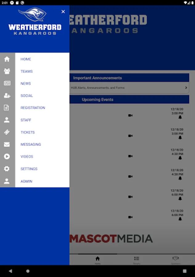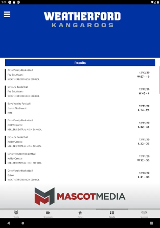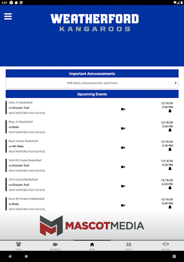 Content is managed by the Weatherford Kangaroos Athletics Department with help of high school students gaining valuable access to emerging and mobile technologies.