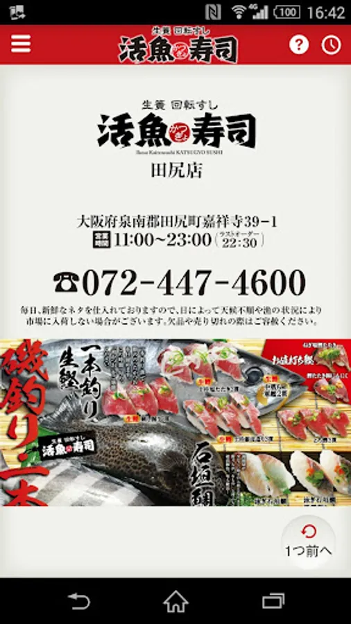 生簀回転すし活魚寿司(泉南郡田尻町)のお持ち帰り専用注文アプリです。