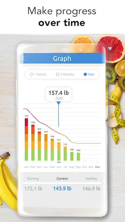 Our graphs show you exactly what you want to know in seconds. The monthly view helps you see the effects of recent diet choices on your weight, while the 3-month and yearly views let you monitor and track your progress over time. Ideal Weight is the easy and fast way to reach your weight loss goal, so you can control your weight faster and without stress.