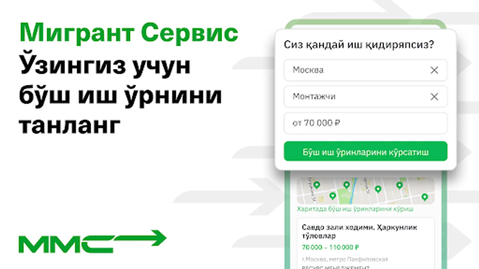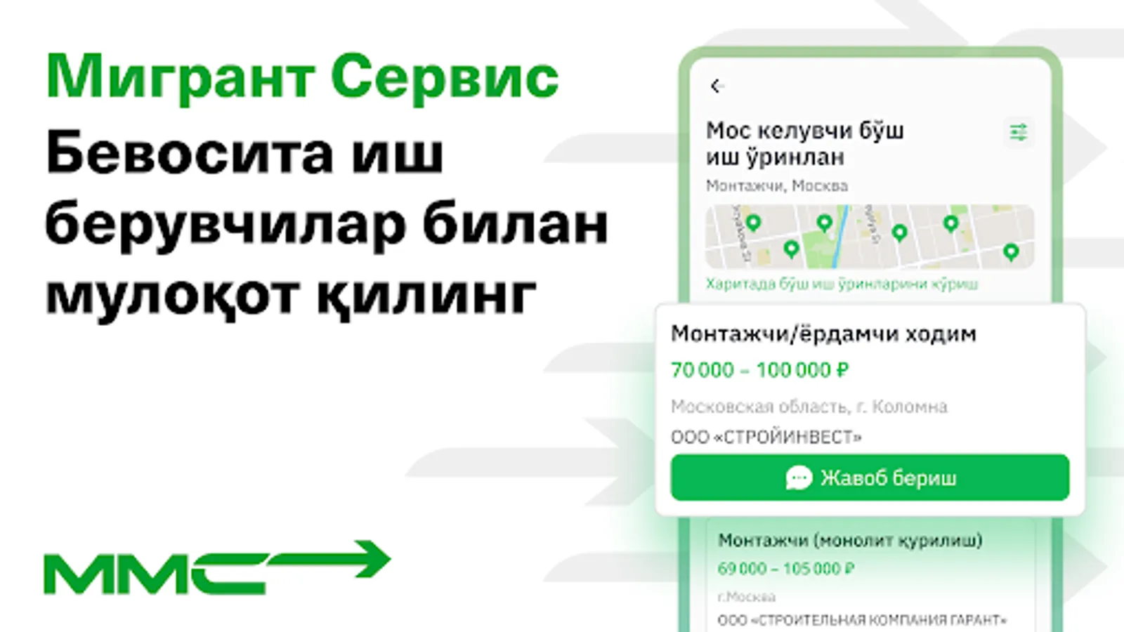 Бевосита иш берувчилардан энг яхши ишни топинг. Бевосита иш берувчиларга жавоб қайтаринг, ёзинг ва қўнғироқ қилинг - бепул ва воситачиларсиз! Мутахассисликлар бўйича ва картада қулай излаш - ишни уйга яқин жойда топинг! Уйга ўтказмаларни комиссияларсиз жўнатинг - тез ва қулай.