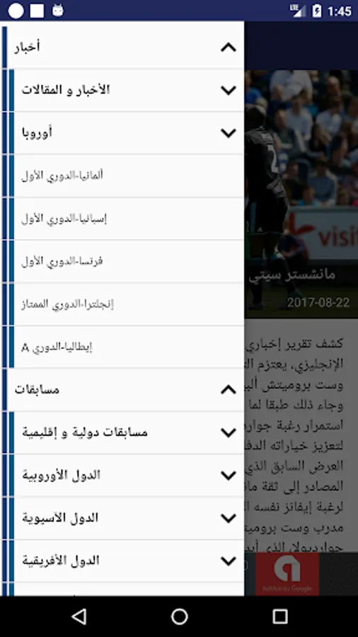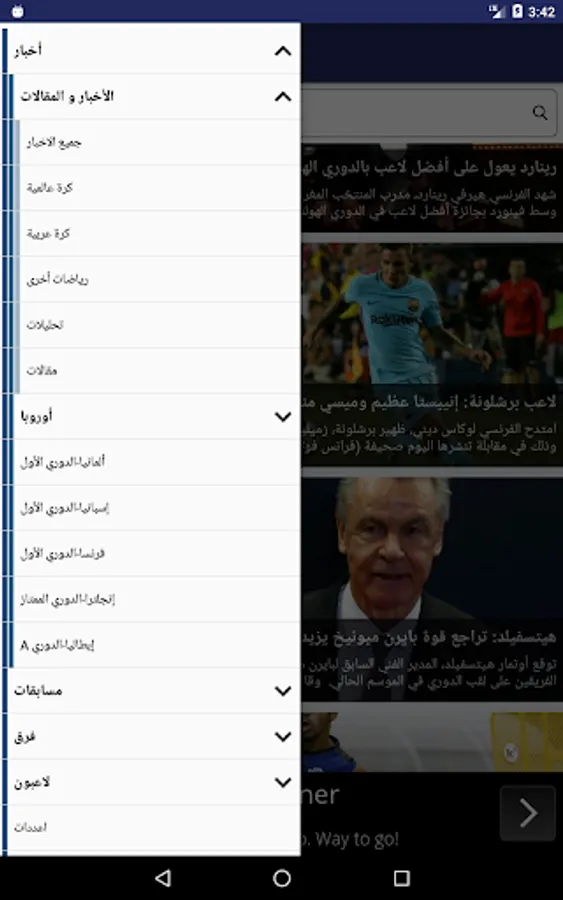 The application also has a daily update and continuing to the latest articles and news for the world's best teams and all this comes to you in Arabic.