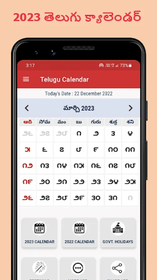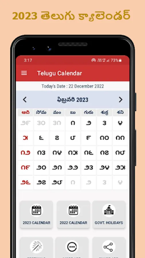 Main Features of Calendar Telugu 2023 app :