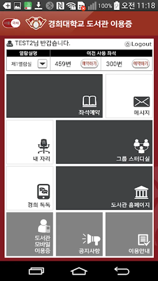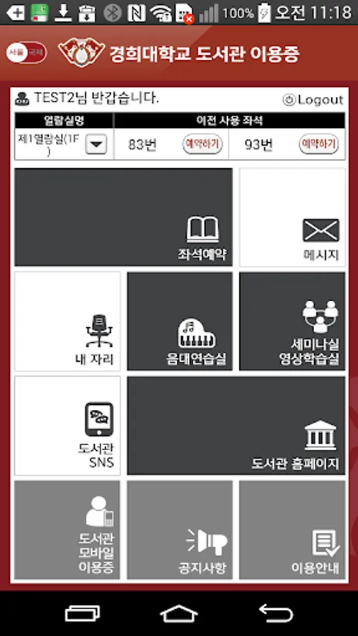 - When using the library reading room seating General User Authentication