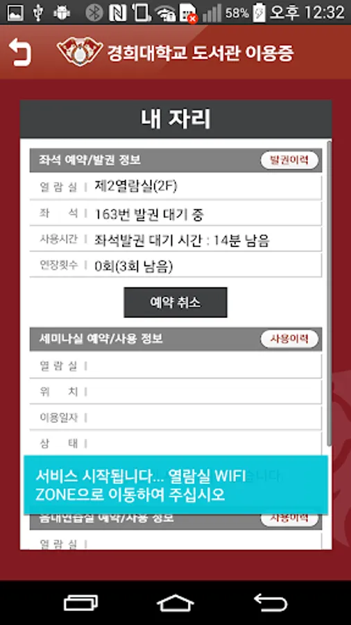 - Check the library used by the general reading room seats Status