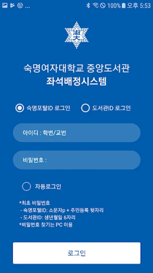 숙명여자대학교 중앙도서관 좌석배정시스템 Screenshots