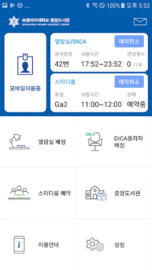 Sookmyung Women's University Central Library is an application that can be assigned to the reading room seat assignment and study room.
