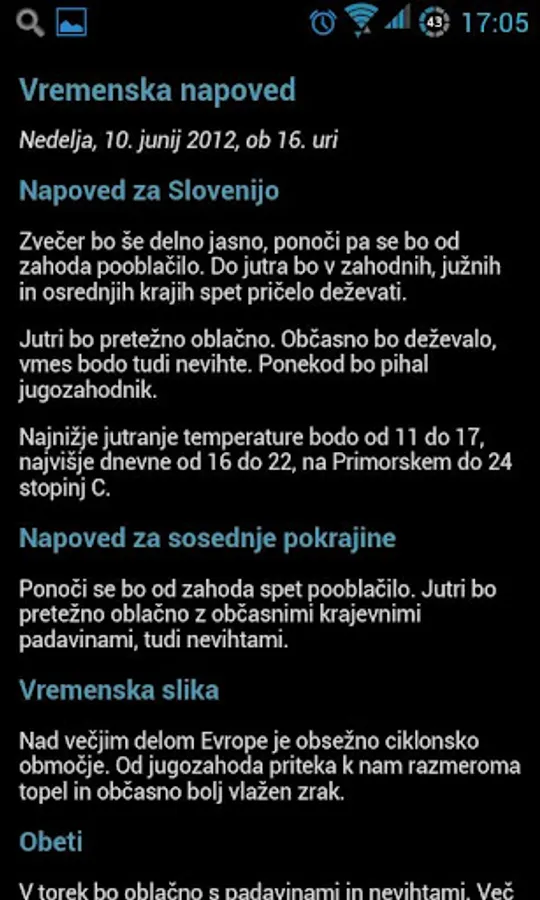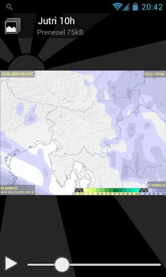 Sonček collects weather information from www.vreme.si. It is designed to make browsing through the aladin forecast, radar and satellite images simpler on android devices.