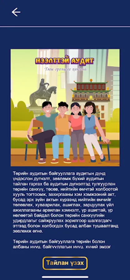 Монгол Услад Төрийн Хяналтын тогтолцоо үүсэж хөгжсөний 100 жилийн ойд зориулан Төрийн хяналтын тогтолцооны түүхэн хөгжлийн ач холбогдлыг олон нийтэд таниулах ажлын хүрээнд уг AR аппликейшнийг бүтээв.