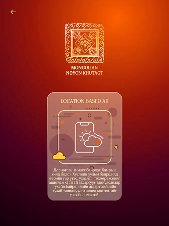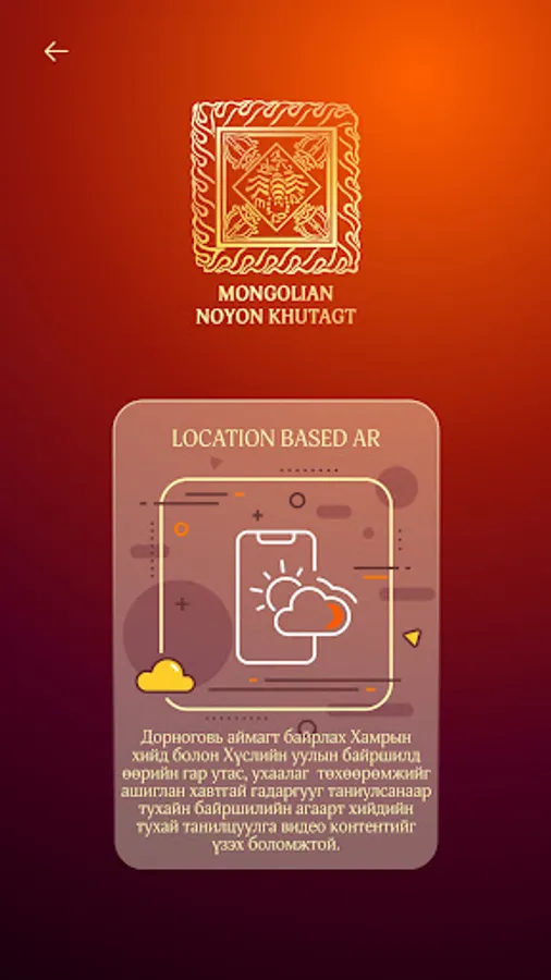 Энэхүү аппликейшин нь “Говийн Ноён Хутагтийн Музей”-ний биет болон биет бус соёлын өв, соёлын түүхэн үл хөдлөх өв, музейн үзмэрүүдийг “AR” технологийн тусламжтайгаар 3 хэмжээст дүрслэл, аудио болон видео контентээр баяжуулан харуулсан.