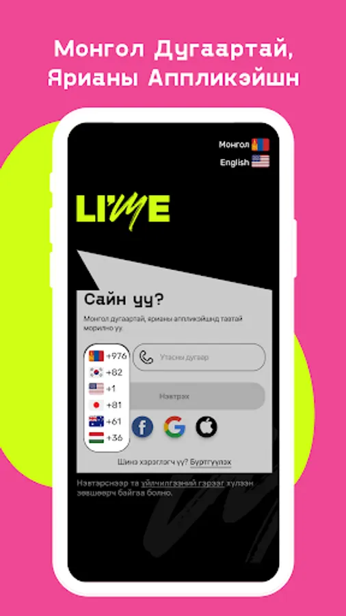LIME - You can connect to all landline and mobile users in Mongolia from anywhere in the world using the wireless application with Mongolian number.