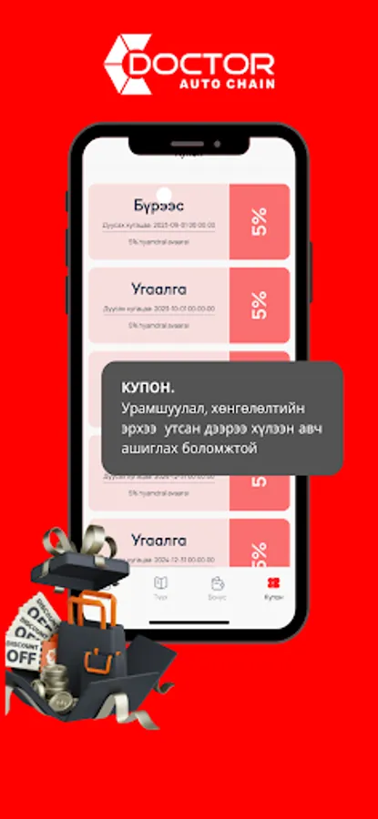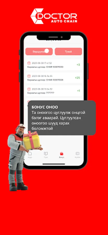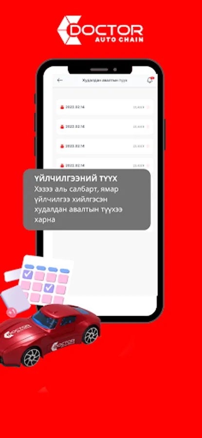 Доктор Авто Сүлжээ компаний харилцагчдад зориулсан апп. Та Доктор Апп-аар дамжуулан үйлчилгээ болон худалдан авалтын түүхээ харах, засвар үйлчилгээний цаг захиалах, бонус оноогоо хянах, мөн хямдралын купон хүлээн авах зэрэг таны автомашин дах амьдралыг аз жаргалтай байлгахад туслах цахим ертөнцөд нэвтрэх болно.