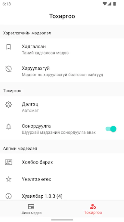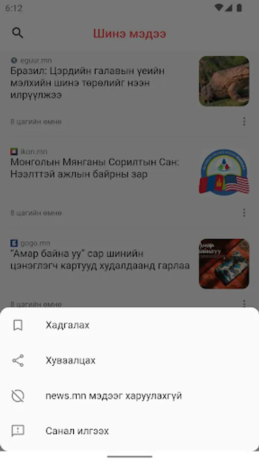 "New News" app where you can get news from Mongolian news sites in one place without delay.