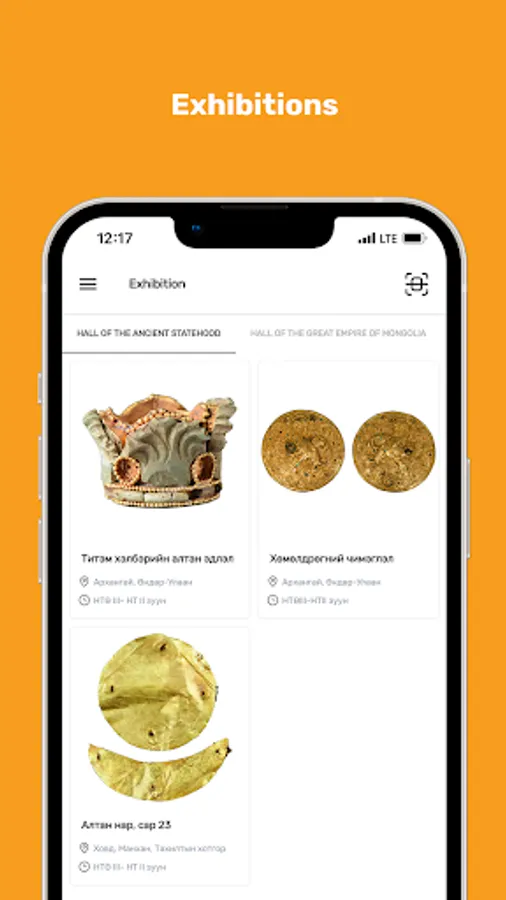 Chinggis Khan Museum is historical museum which display over 6,000 exhibits and artifacts. The 5,741 pieces out of the abovementioned 5,927 domestic exhibits are being brought for public display from 27 organizations inside the country, including state or local owned museums, libraries, archives, academic and educational institutions and the treasury fund. In addition, 154 new exhibits are being manufactured, 18 exhibits are being made as copies of memorial heritage items, and another 10 exhibits of scale models were manufactured as well.