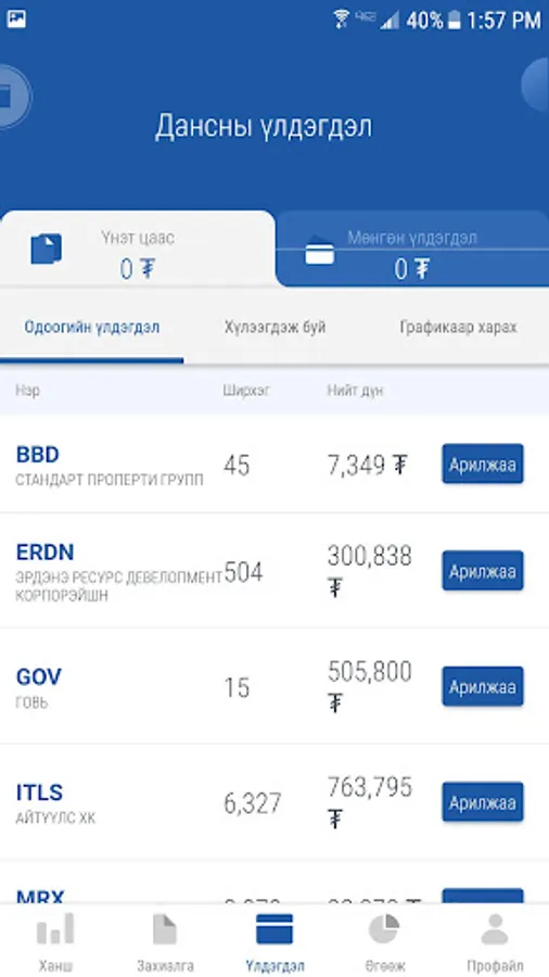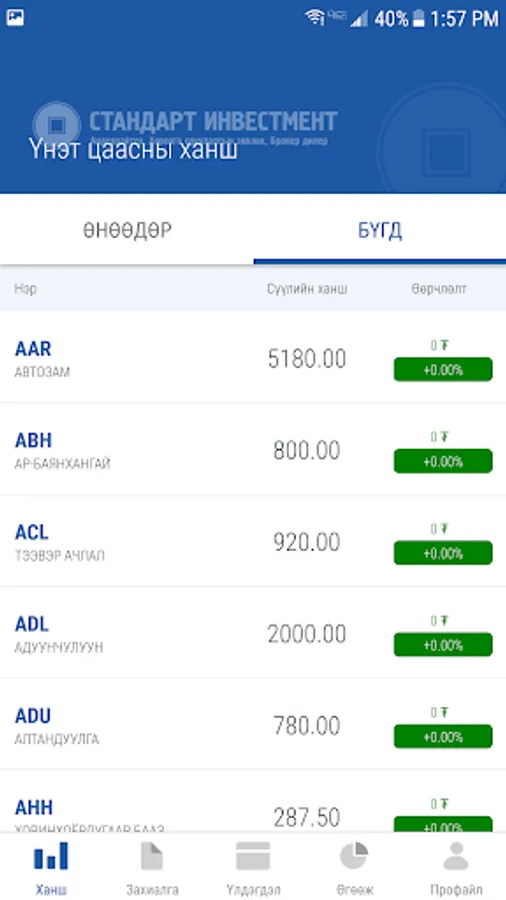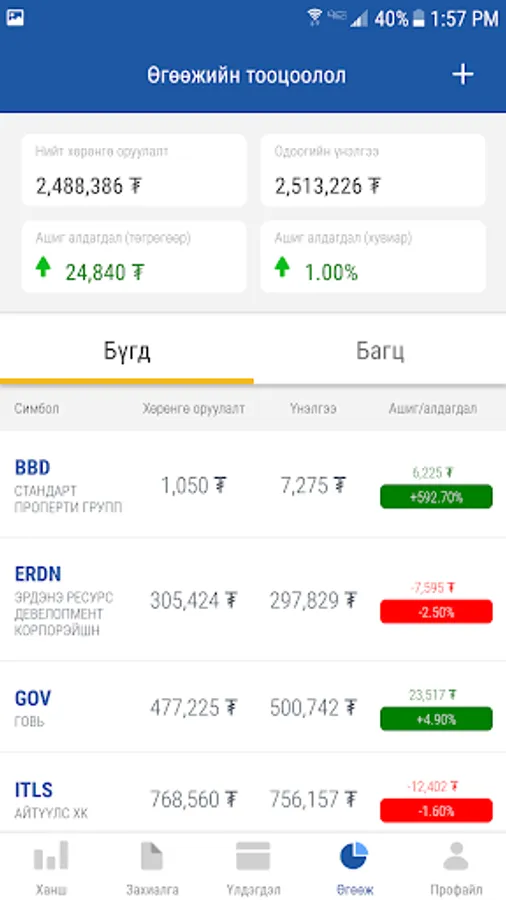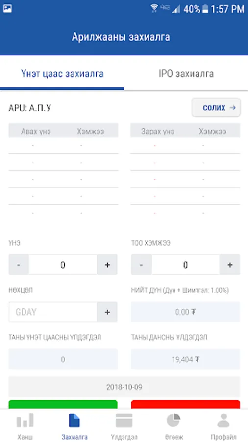By using this app you can either order directly to the Mongolian Stock Exchange (MSE) or Standard Investment Agreement. You can do this from your mobile right from this app, such as buying, selling, controlling your account, dividing money, earning money, creating a package, and calculating profit losses from MSE-listed securities.