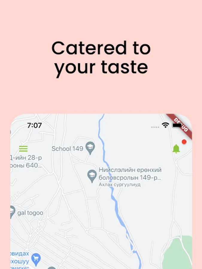 Nearby буюу цахим газрын зураг дээр суурилан танд хамгийн ойр байгаа үйлчилгээний газруудыг танилцуулах ба өдөр оройн хоол болон уух зүйлсийг санал болгох болно.