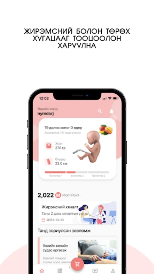 Хэрвээ та жирэмсэн бол сүүлийн сарын тэмдгийн өдрөө зөв оруулахад л Ээжүүд апп таны ургийн хөгжлийн үе шатад тулгаарлан зөвхөн танд зориулсан зөвлөгөө, мэдээллүүдийг өгөөд зогсохгүй жирэмсний хяналтын товлолууд, хэзээ төрөх зэргийг шууд мэдэх боломжтой.