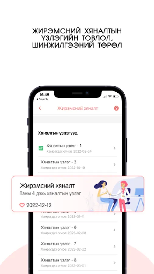 Жирэмсний хяналт- Таны жирэмсний хяналтын хугацаат үзлэг, зайлшгүй өгөх шинжилгээний дэлгэрэнгүй мэдээллийг багтаасан