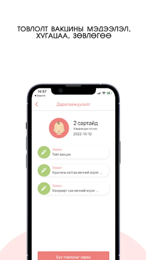 Дархлаажуулалт- Дархлаажуулалтын товлолын хугацаагаа өөрөө хянаад явах боломжтой
