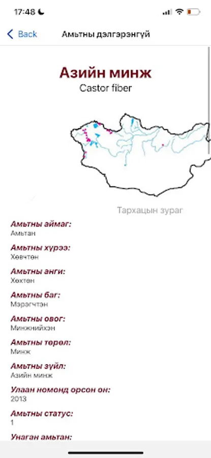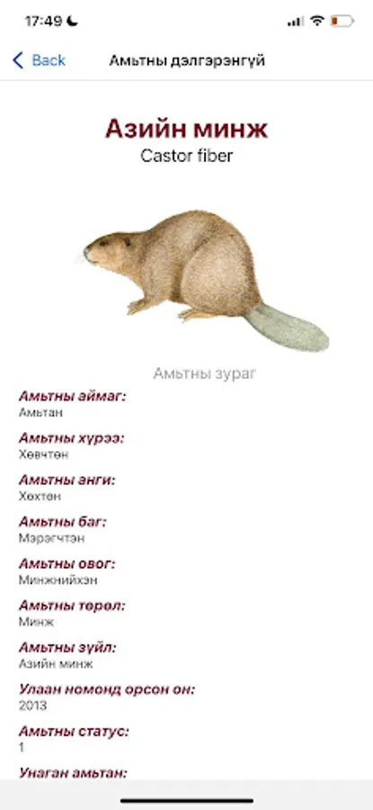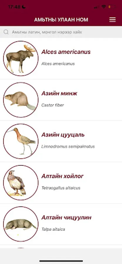 This work contains information on 109 species of animals listed in the Mongolian Red Book.