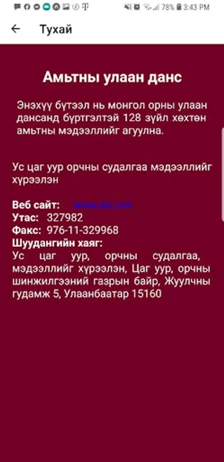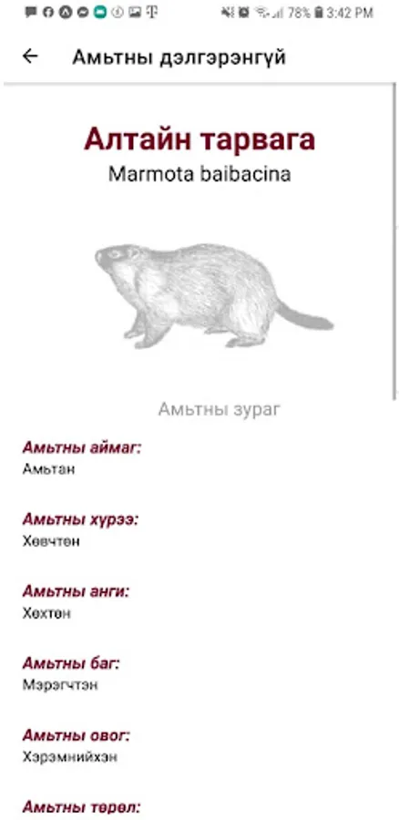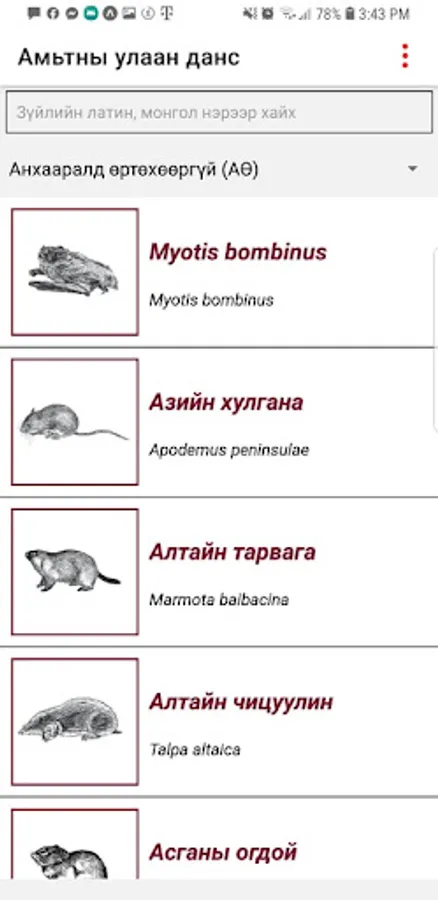 This work contains information on 128 species of mammals listed in the Mongolian Red List.