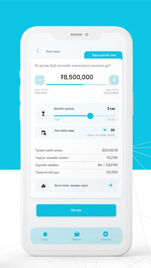 A loan where you complete certain information and meet certain criteria. Once you sign a contract, you will be eligible for a loan of 100,000-1,000,000 MNT.