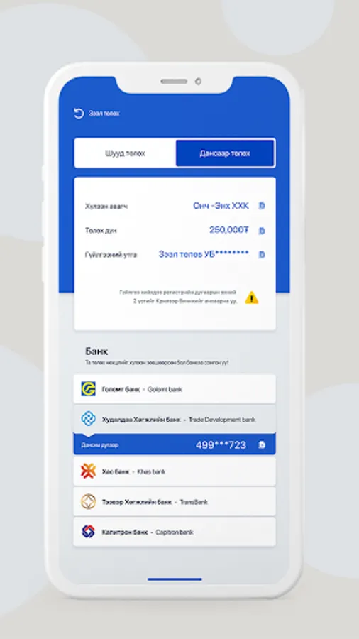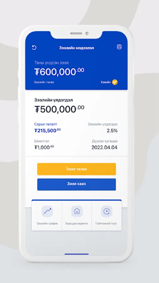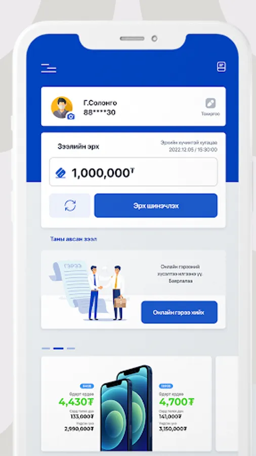 A loan where you complete certain information and meet certain criteria. Once you sign a contract, you will be eligible for a loan of 100,000-1,000,000 MNT.