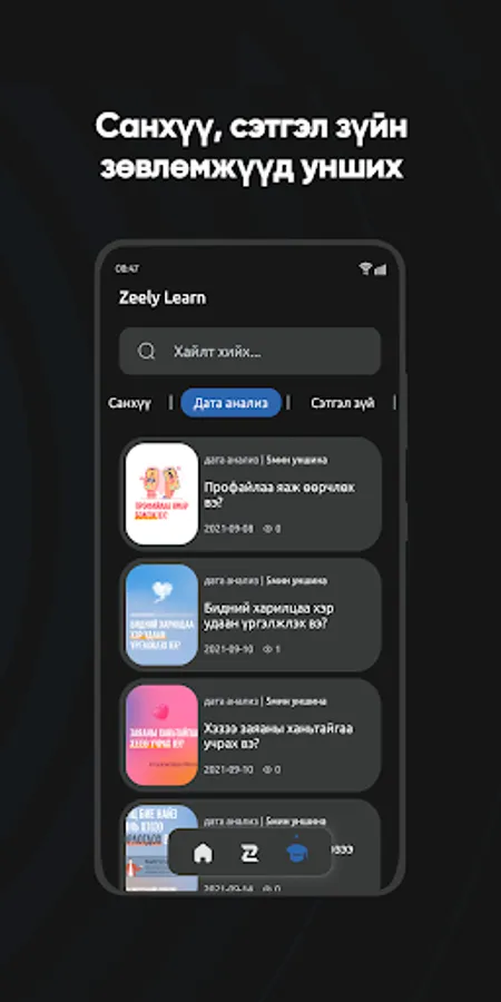 • Read tips and articles to help you manage your finances wisely through the Zeely Learn menu.