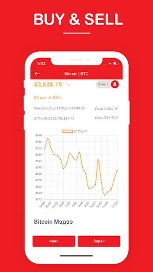 -Биткойны ханшийн өөрчлөлтүүдийн мэдээллийг харах боломжтой.