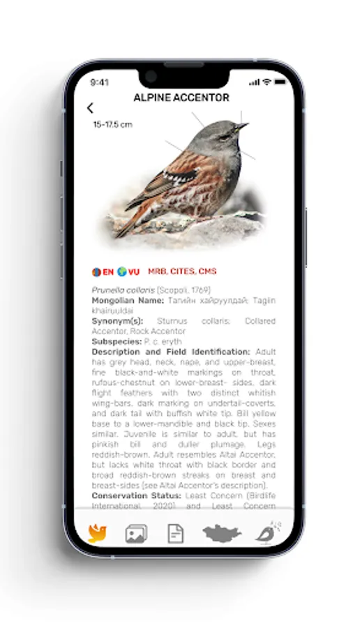 The first comprehensive cross-platform bird app in Mongolia that allows you to access information and data on all species of birds in Mongolia and to turn anyone into a birding expert.