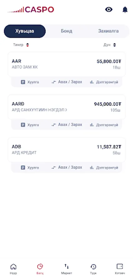 Caspo апп нь хөрөнгө оруулалтын багцаа удирдах, монголын хөрөнгийн биржийн бүх үнэт цаасыг арилжих боломжийг танд олгоно.