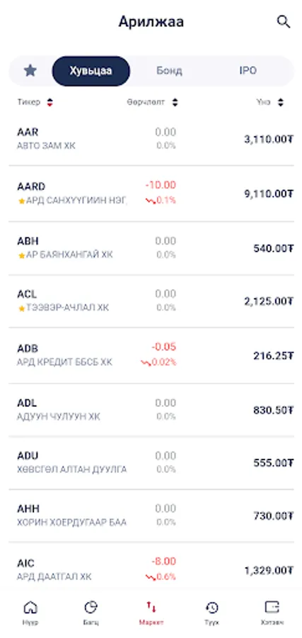 - Үнэт цаас авах, худалдан авсан хувьцаагаа арилжах