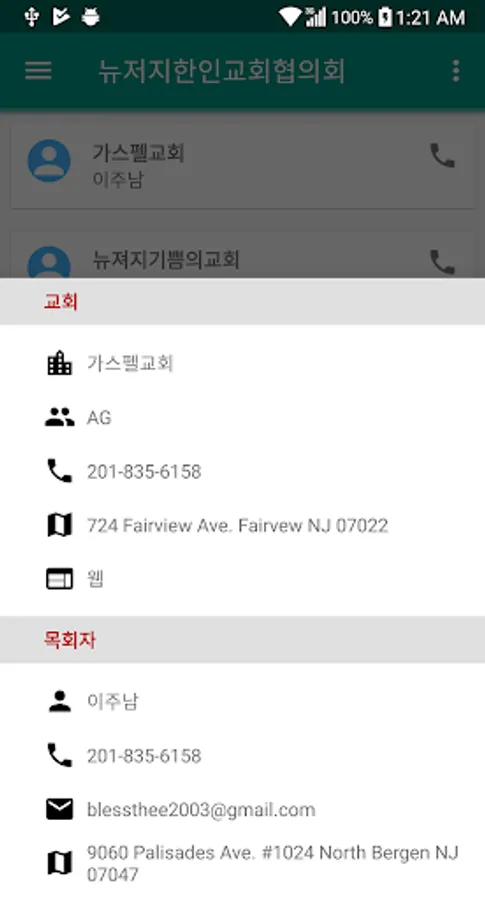 뉴저지 한인 교회 주소록