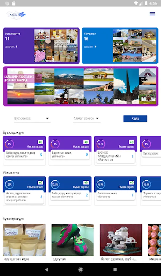 It contains information of micro, small and medium-sized enterprises from the country’s rural areas. The catalogue system enables the effective information sharing and marketing mechanisms between central/local governments and private enterprises, and encourages local governments to rationalize the investment and private sector development operations, and optimize the use of their limited economic resources. By the use of “MonBiz”, general public and users can effectively and easily reach vast pool of local products and services produced in rural areas.