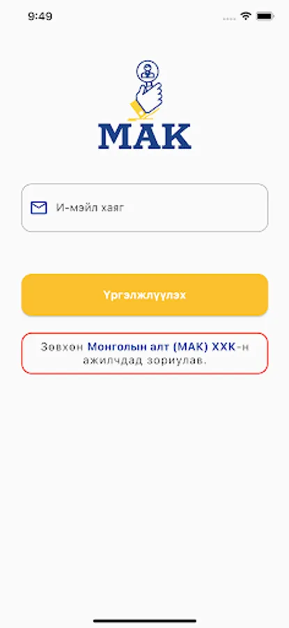 App for internal use of "Mongolyn Alt" MAK LLC.