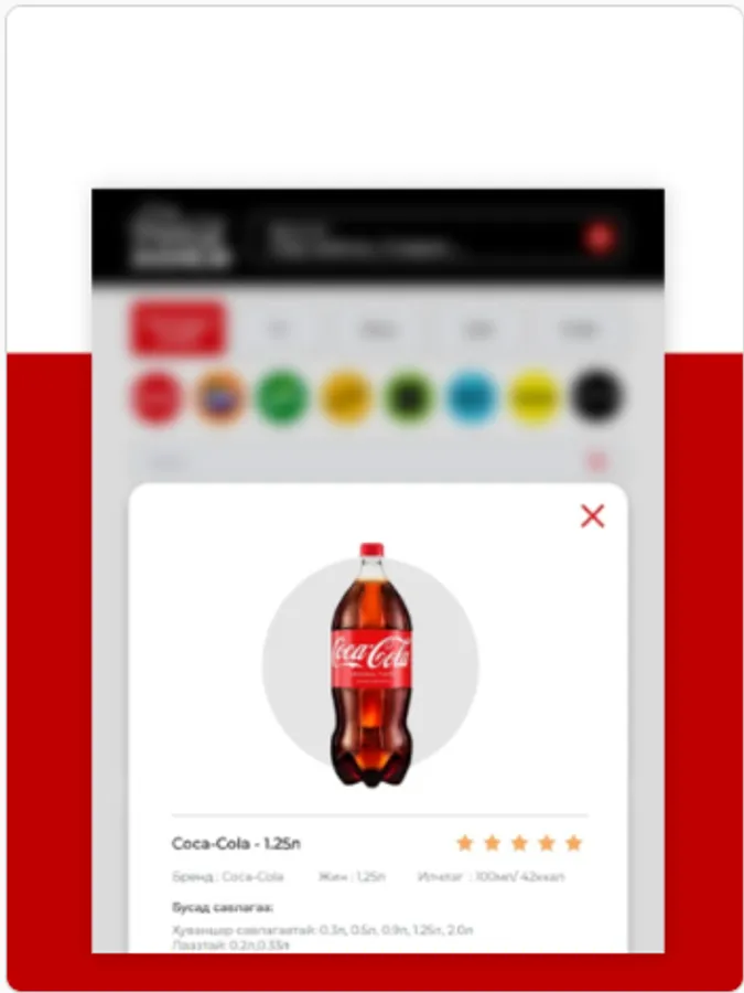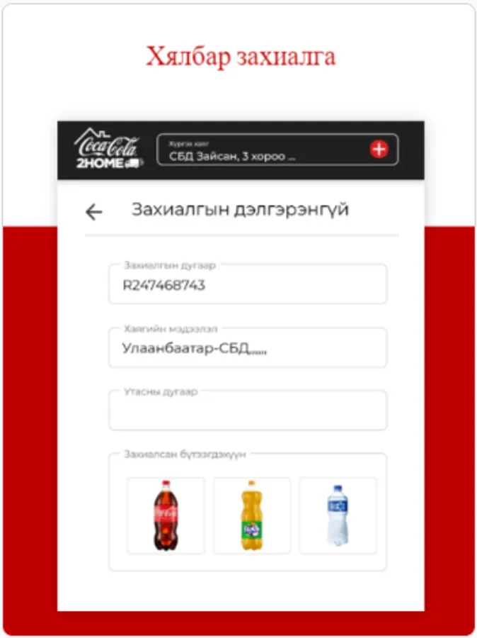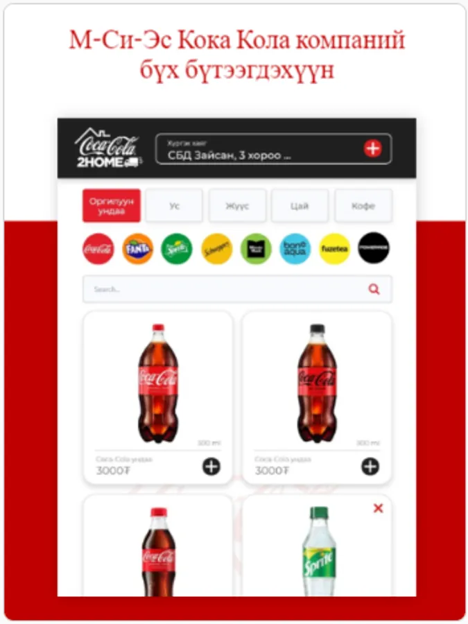 Энэхүү аппликейшн нь М-Си-Эс Кока Кола компанийн бүтээгдэхүүнээс худалдан авалт хийж гэртээ хүргүүлэн авах боломжийг танд бүрдүүлж байна.