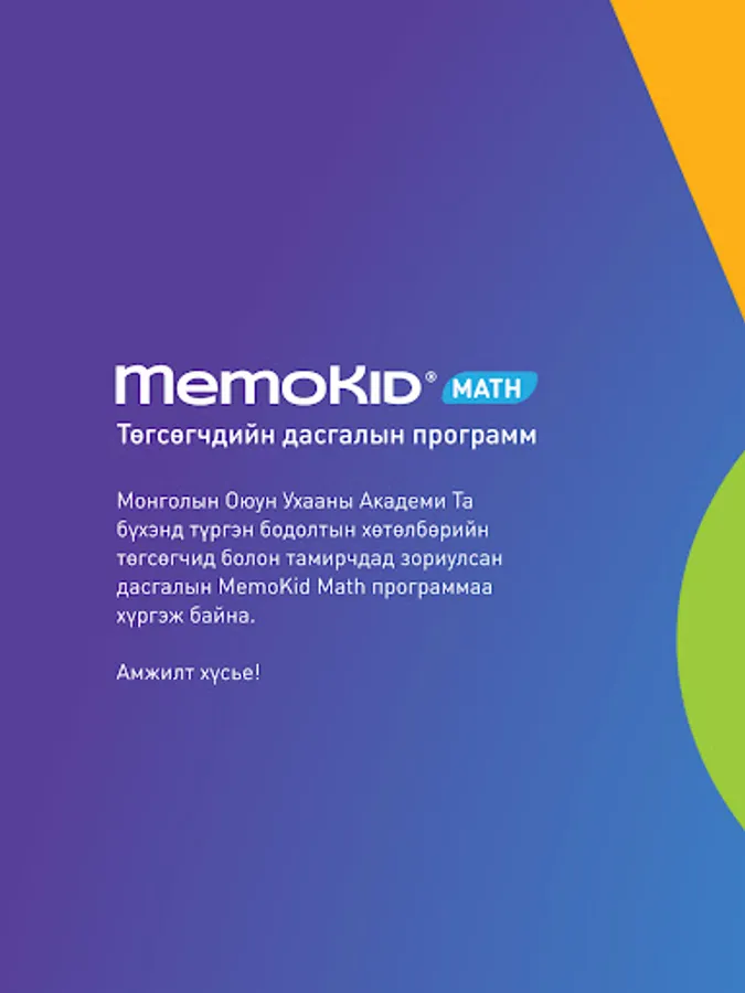 Mongolian Academy of Intelligence presents MemoKid Math exercise program for quick thinking. Good luck!