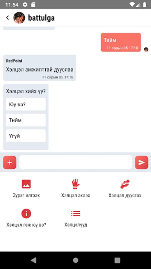 Чатын аппликейшн. RedPoint аппликейшн эрхээрээ нэвтрэдэг бөгөөд хэрэглэгчид хоорндоо гэрээ хэлцэл хийх боломжтой.