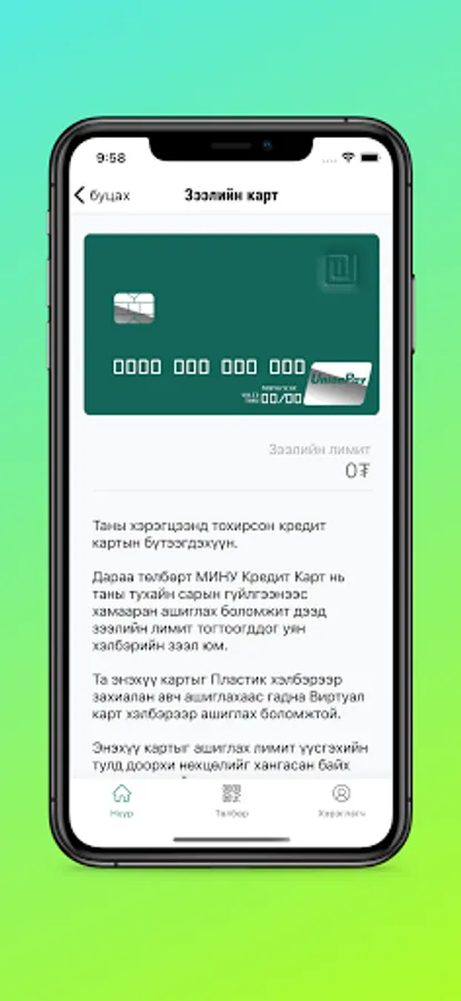360 Файнанс ББСБ ХХК-тай картаар үйлчлэгч байгууллагын хамтран ажиллах гэрээ байгуулан, М-ПОС терминал электрон төхөөрөмж ашиглан авч төлбөрийн карт төлбөр хүлээн авах боломжоор хангаж буй аппликейшн юм.