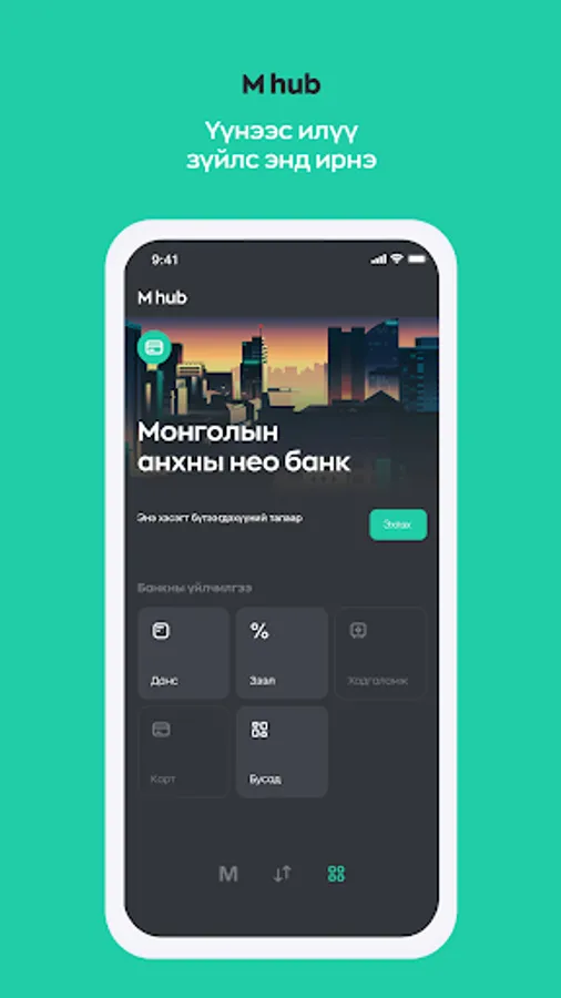 М бол дараагийн үеийн салбаргүй, бүрэн дижитал банк. Бид уламжлалт банкны бүтээгдэхүүн үйлчилгээг дахин загварчилж, хувь хүний эрүүл санхүүг дэмжих орчинг хамтдаа бүтээнэ.