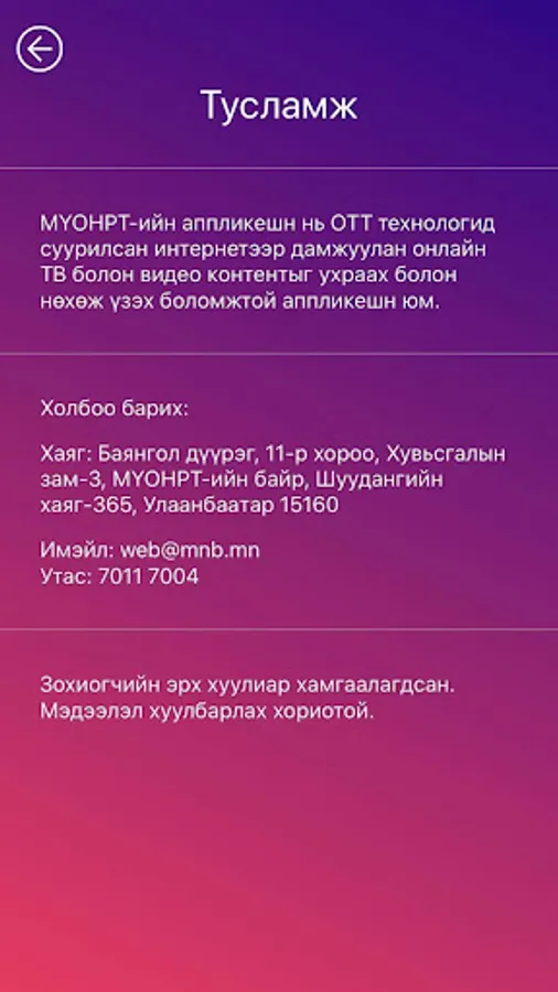 This app provides TVs, Radios and Video on Demand content delivery of MNB.