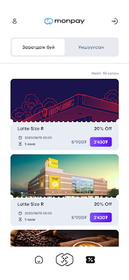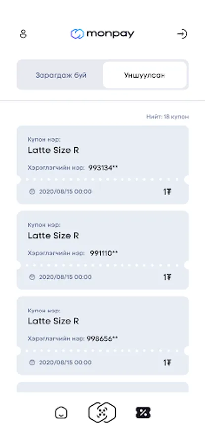 КУПОНЫ ЖАГСААЛТ - Монпэй апликейшн дээр зарагдаж байгаа өөрийн байгууллагын купоны мэдээллүүдийг харах боломжтой.