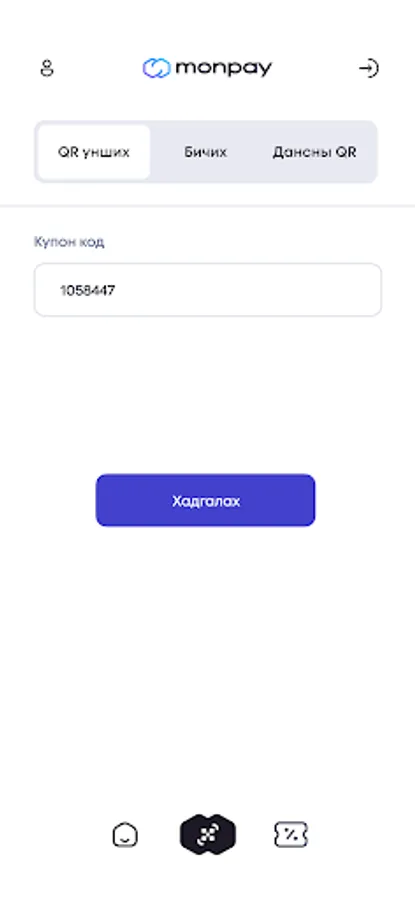 КУПОН ШАЛГАХ – Монпэй апликейшнаас худалдан авсан хэрэглэгчийн купоныг уншуулж баталгаажуулна.